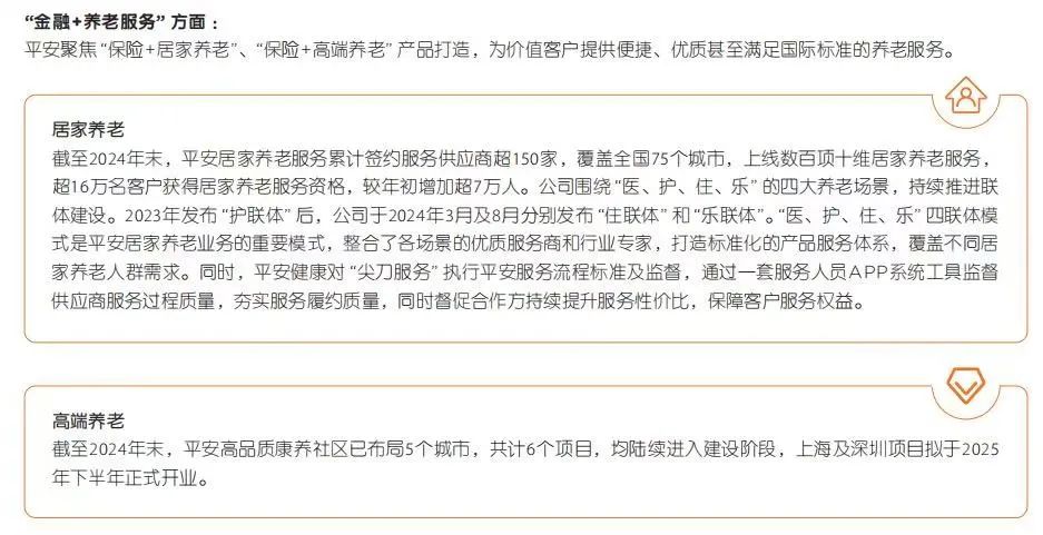 与此同时,平安的高端康养社区正在像“种子”一样逐步在各地“发芽”,预计2025年将在五个城市“开花结果”。这一领域符合未来刚需,平安在这一领域的进展比较迅猛。