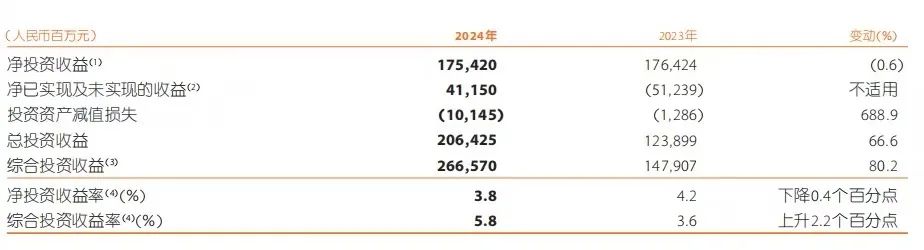 其综合投资收益率5.8%,同比提升2.2个百分点。