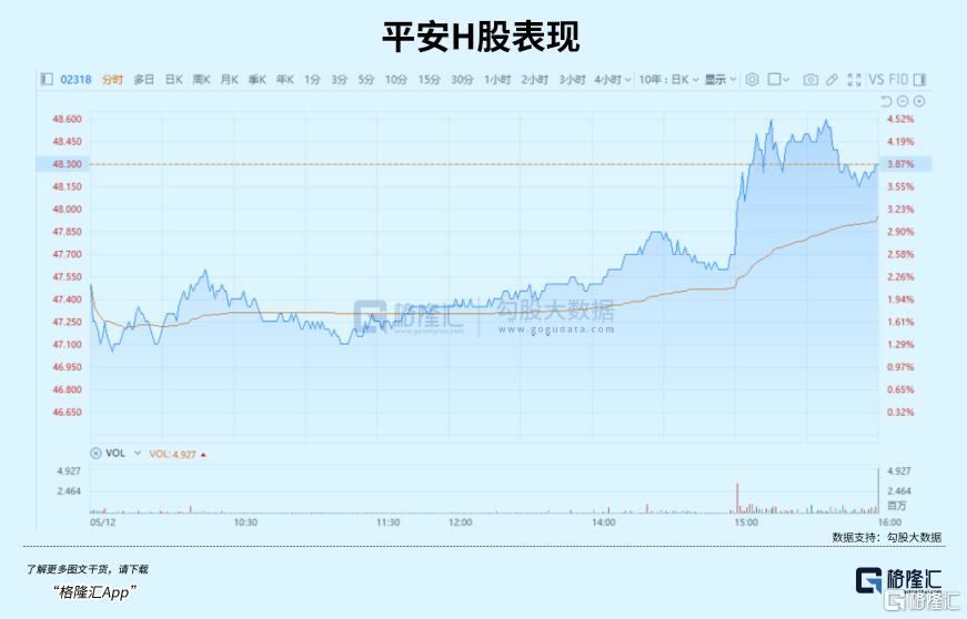 其中平安A股收涨1.64%,H股大涨3.87%。