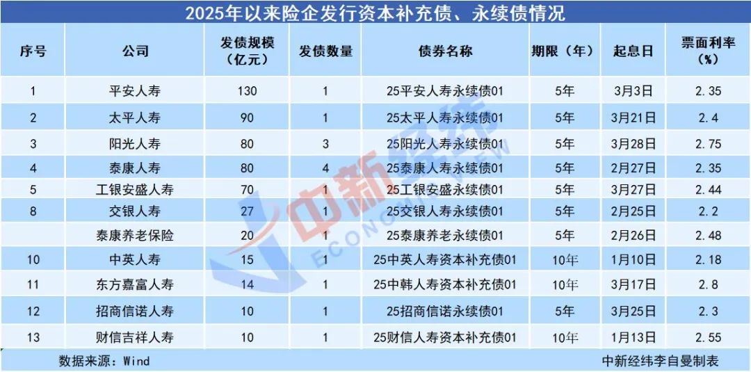 中英人寿、东方嘉富人寿(原中韩人寿)、财信吉祥人寿3家公司发行了资本补充债。