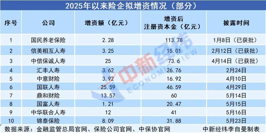 此外,前述公司中有的已连续两年增资。据国家金融监督管理总局官网,2024年2月2日,中信保诚人寿获批增资25亿元;2024年5月15日,中华联合人寿获批增资3亿元;2024年6月27日,锦泰保险获批增资12.79亿元。