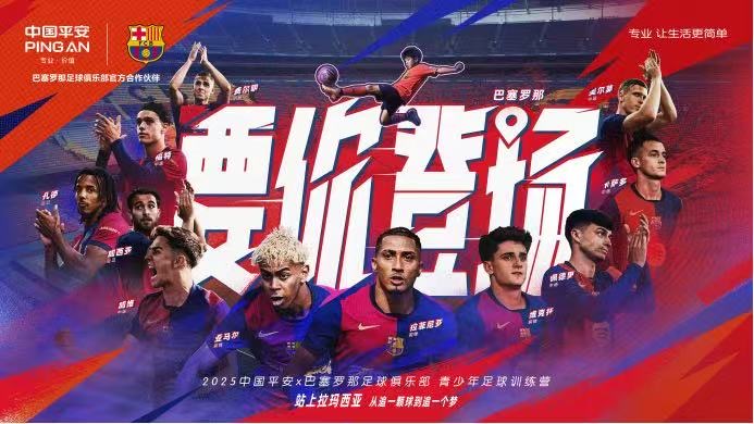 近日,中国平安保险(集团)股份有限公司(以下简称"中国平安")与巴塞罗那足球俱乐部(FC Barcelona,以下简称"巴萨")达成最新体育公益合作。中国平安将联合巴萨启动2025"要你登场"青少年足球训练营,面向全国选拔足球青少年,前往巴萨学院体验为期五天的专业足球训练。