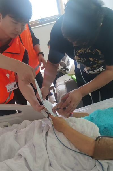 当天下午13点,理赔小组顺利抵达密云区医院。此时,李先生一家正在吃午饭,裴女士还无法进食,只能通过输液补充人体营养所需。病房里还有李先生的父亲和两个孩子,孩子们身上有不同程度的受伤痕迹,但好在精神状态不错,哥哥正在指挥弟弟吃饭。
