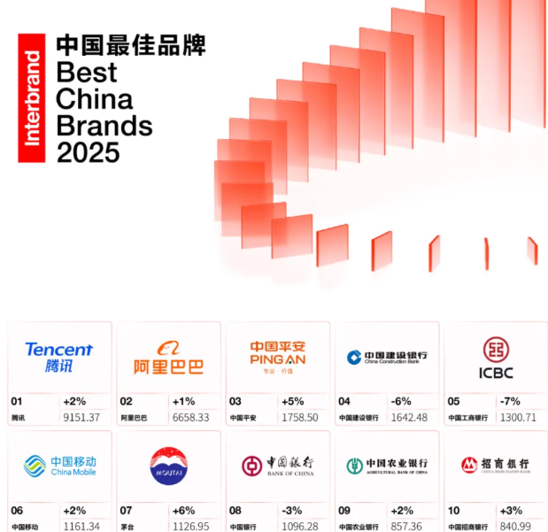 25年9月2日,全球知名品牌咨询机构Interbrand(英图博略)正式发布“2025年中国最佳品牌排行榜”。中国平安以1758.5亿元的品牌价值和5%的稳健增速,首次跃居榜单第三位,成为榜单中排名最高的金融企业,并连续第12年稳居中国保险业品牌首位。