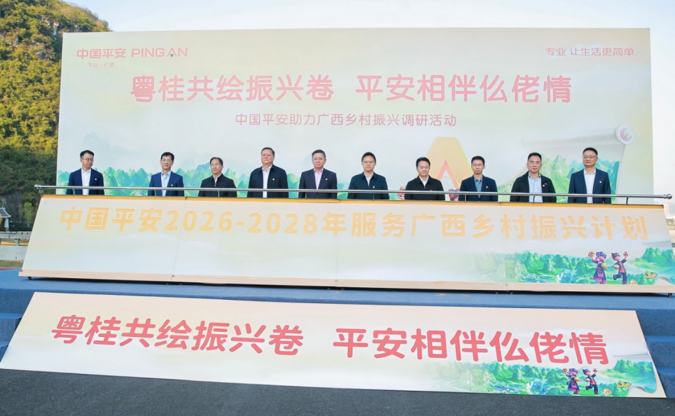 在"粤桂帮扶"走过十余个年头后,中国平安将服务广西乡村振兴计划"再续三年"。调研当日,中国平安发布《中国平安2026-2028年服务广西乡村振兴计划》。未来三年,中国平安将聚焦党建共建、产业帮扶、金融帮扶、民生帮扶、消费帮扶五大重点领域,为广西特色产业提供不低于500亿元风险保障,捐赠产业振兴项目资金不少于5000万元;提供涉农贷款资金支持不低于20亿元;消费帮扶广西特色农产品不低于2500万元。