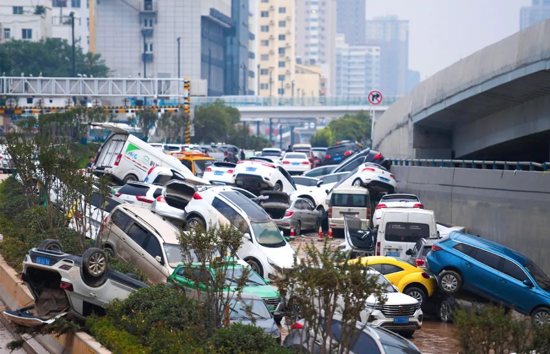 ▲2021年7月22日在郑州京广路隧道南出口拍摄的车辆。图/新华社发