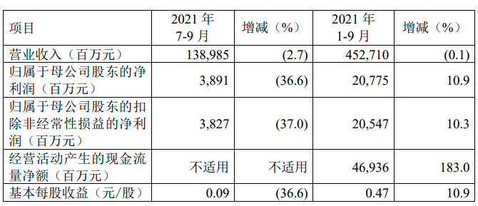 10月28日晚,中国人保(SH601319)公告,2021年第三季度营业收入1389.85亿元,比上年同期增加2.7%,归属于母公司股东的净利润38.91亿元,比上年同期增加36.6%;前三季度营业收入4527.1亿元,比上年同期增加0.1%,归属于母公司股东的净利润约207.75亿元,比上年同期增加10.9%。