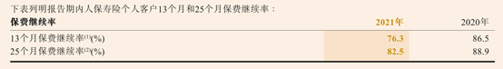 个人客户续保率也出现大幅下降。2021年,人保寿险13个月、25个月保费继续率分别为76.3%和82.5%,分别同比下降10.2、6.4个百分点。