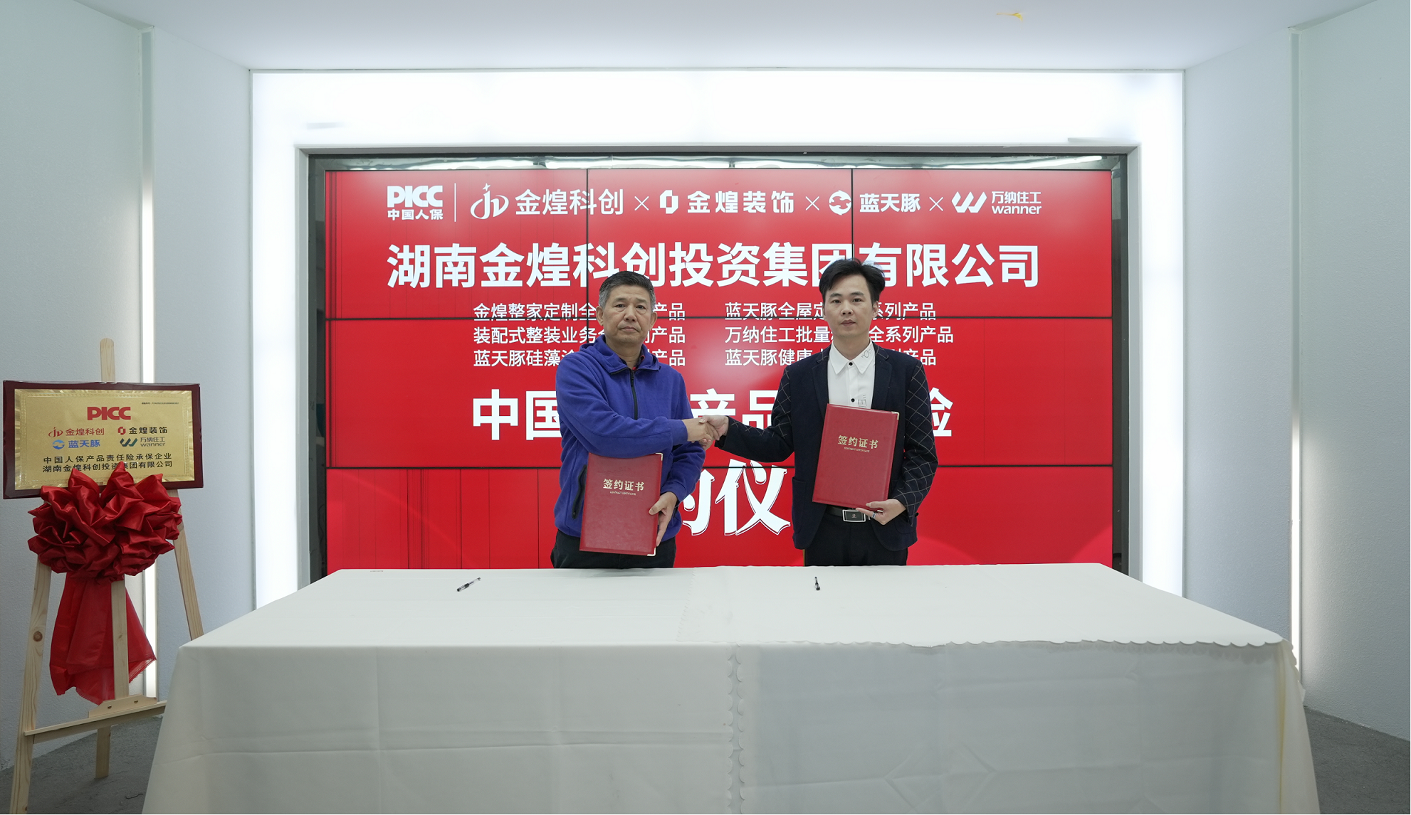 金煌装饰代表童彬原与中国人保工作人员签署承保协议。