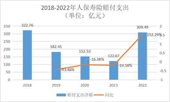 除了承保端的压力,人保寿险理赔端压力不小。2022年,其退保金、赔付支出均出现大幅增长,分别同比增长24.6%、152.3%。