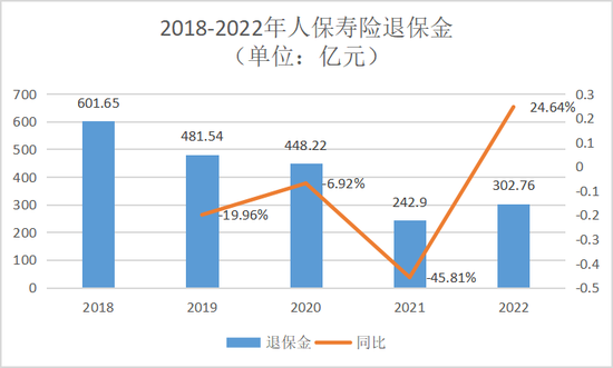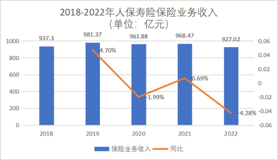 承保端,2022年人保寿险原保险保费收入927亿元,是最近5年内最低,较2021年的968.5亿元同比下降4.3%。