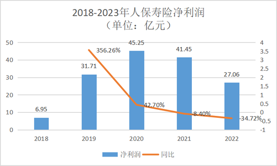 2022年,人保寿险的净利润也出现了大幅度下滑,从41.5亿元下降至27.1亿元,同比下降34.72%,是近5年中下滑速度最快的一年,这与行业大趋势密切相关。