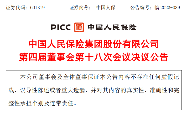 同时,中国人保还审议通过了《关于选举赵鹏先生为公司第四届董事会副董事长的议案》及《关于选举赵鹏先生为公司第四届董事会战略与投资委员会委员的议案》。