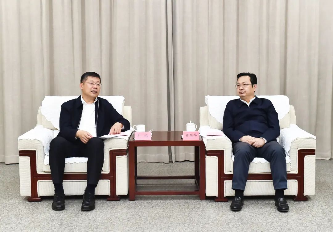 张国华与中国人保集团党委副书记赵鹏一行举行工作座谈。刘向阳摄
