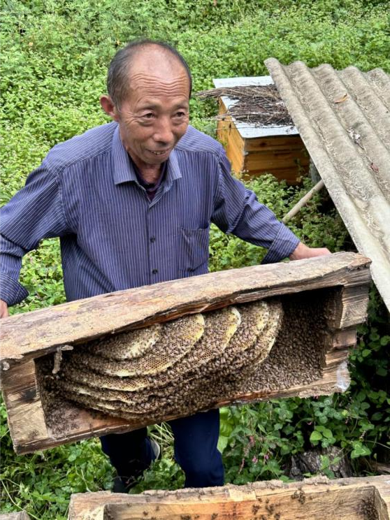 蜂农展示古法养蜂产蜜“棒棒桶”