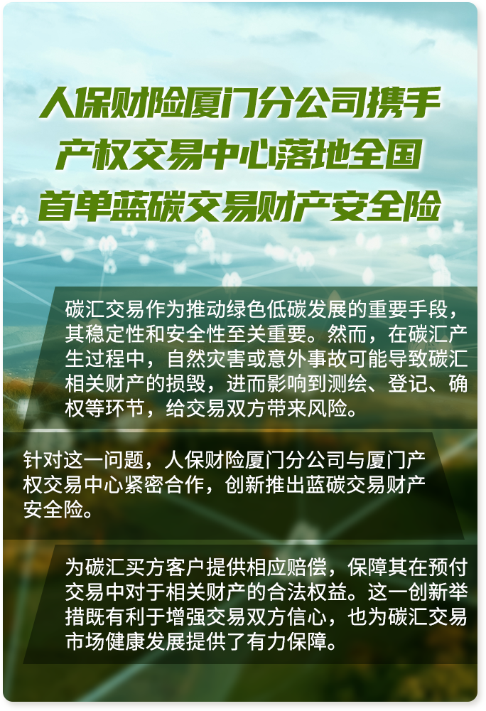 深刻学习领会新质生产力本身就是绿色生产力的重要论述,聚焦绿色能源发展、环境保护、固碳增汇等领域,丰富绿色保险产品体系,创新开展绿色投资,为打造高效生态绿色产业集群提供有力支撑。2023年,中国人保绿色保险共提供风险保障金额75.5万亿元,同比增长20.4%,为风电、光伏、水电等清洁能源提供风险保障2.8万亿元,提供环境污染类责任风险保障金额191亿元,承保森林面积超过10.8亿亩。2024年一季度,承保新能源汽车171.5万辆,同比增长48.4%,充电桩保费收入同比增长63.2%,环境污染责任保险累计为2319家企业客户提供风险保障70.23亿元。