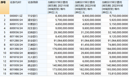 不过根据数据显示,以近三年来的股份行、国有行审计费用来看,各家银行审计费用有升有降。