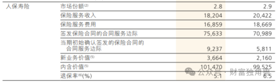 除了盈利能力下滑外,中国人保的市场份额也在下降。截至2023年末,人保财险为32.5%,较上年末下降0.2个百分点;人保寿险为2.8%,较上年末下降0.1个百分点。