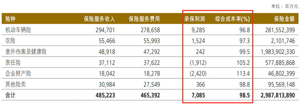 核心财险市占率在下降,综合成本率抬头,承保利润连续三年下滑。