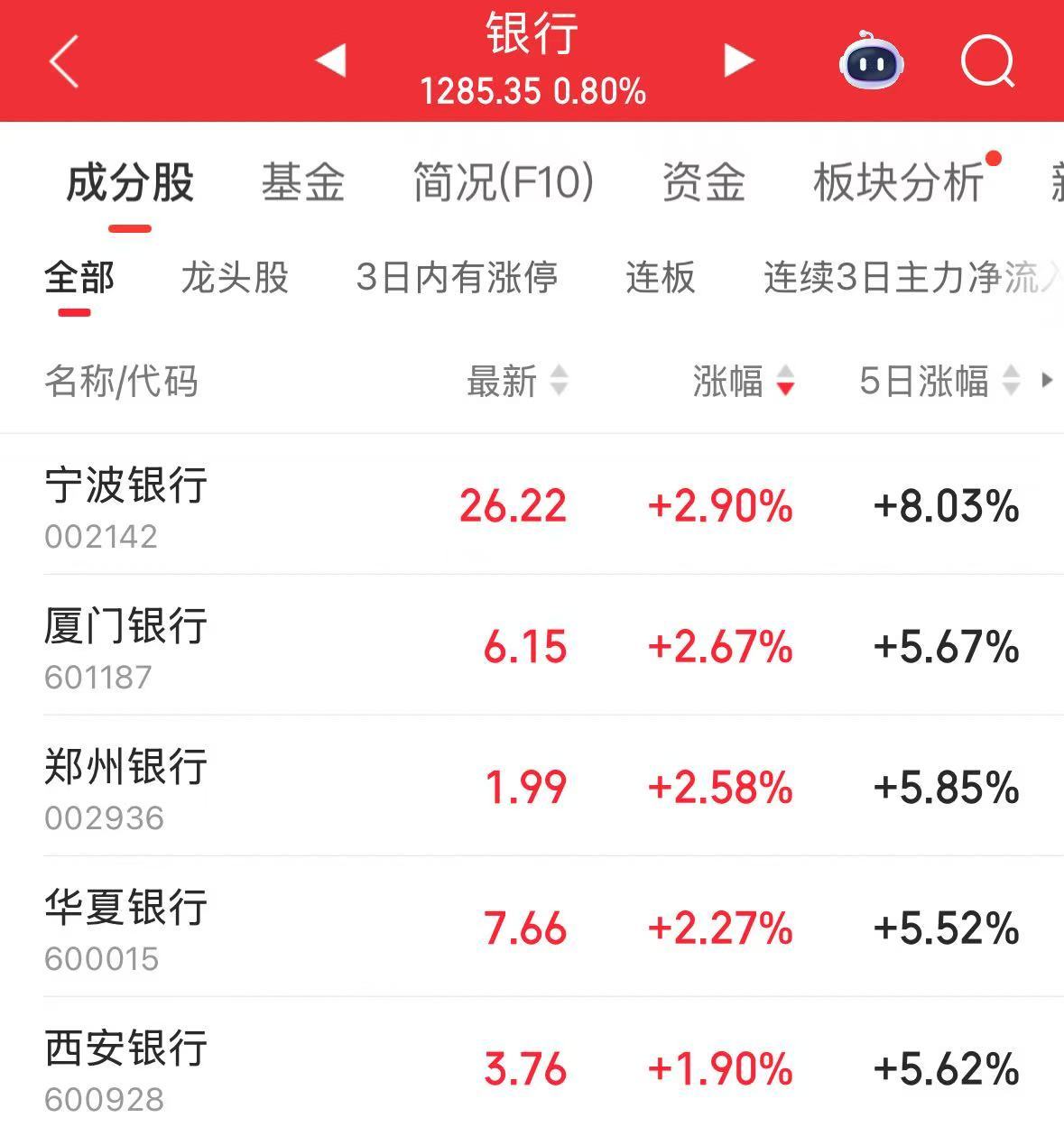 券商、银行股发力,红塔证券涨停,广发证券涨超6%,宁波银行、厦门银行、郑州银行、华夏银行涨超2%。