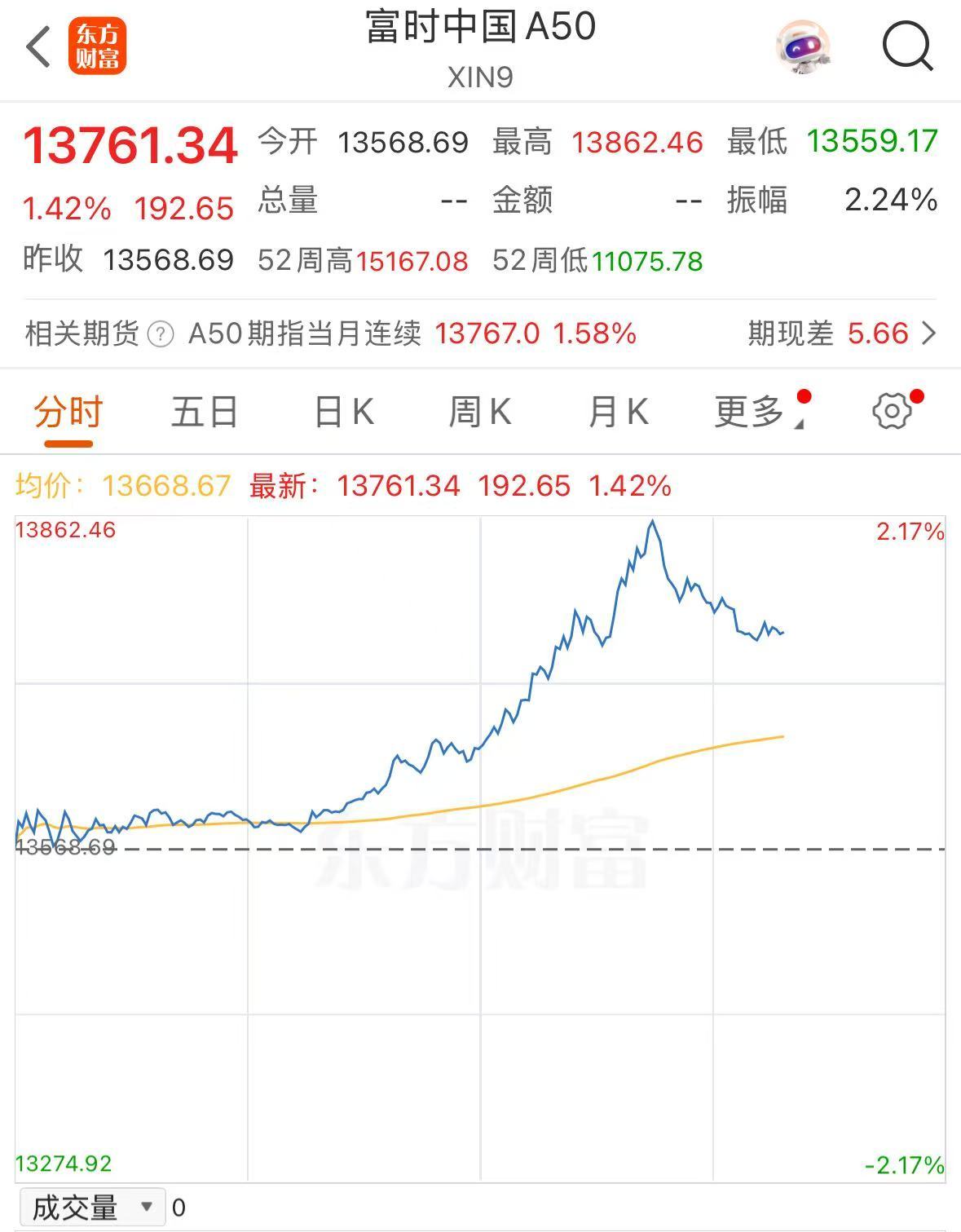 富时中国A50指数期货一度涨超2%,现涨1.42%。