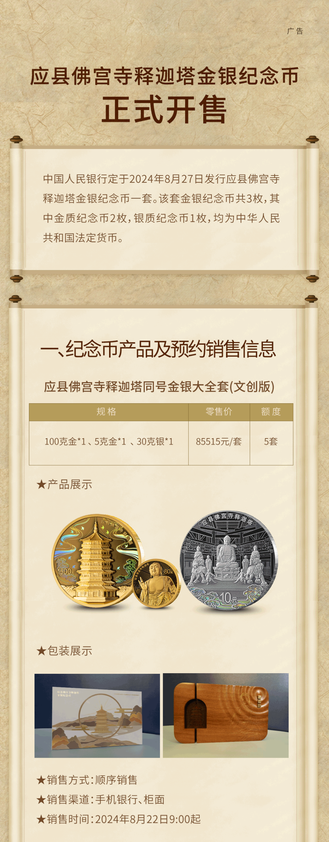 交通银行正式开售应县佛宫寺释迦塔金银纪念币