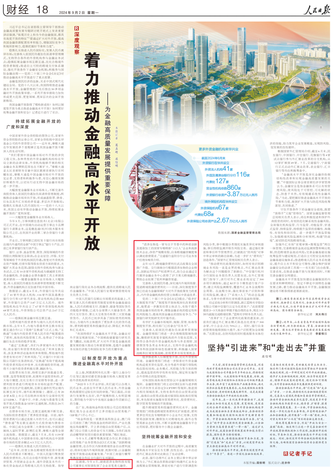 金融是国民经济的血脉,关系中国式现代化建设全局。党的十八大以来,我国持续推进金融高水平开放,金融管理部门先后推出50多项金融对外开放政策举措,一系列开放举措助力加快形成更大范围、更宽领域、更深层次的全面开放新格局。