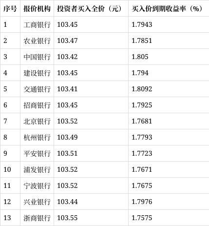 10月21日,中央国债登记结算有限责任公司官网披露柜台流通式债券报价信息,“22浙江债42”(代码2271340)最优买报价方为交通银行,该债券剩余期限2年258天,投资者最优买入价到期收益率1.8092%。