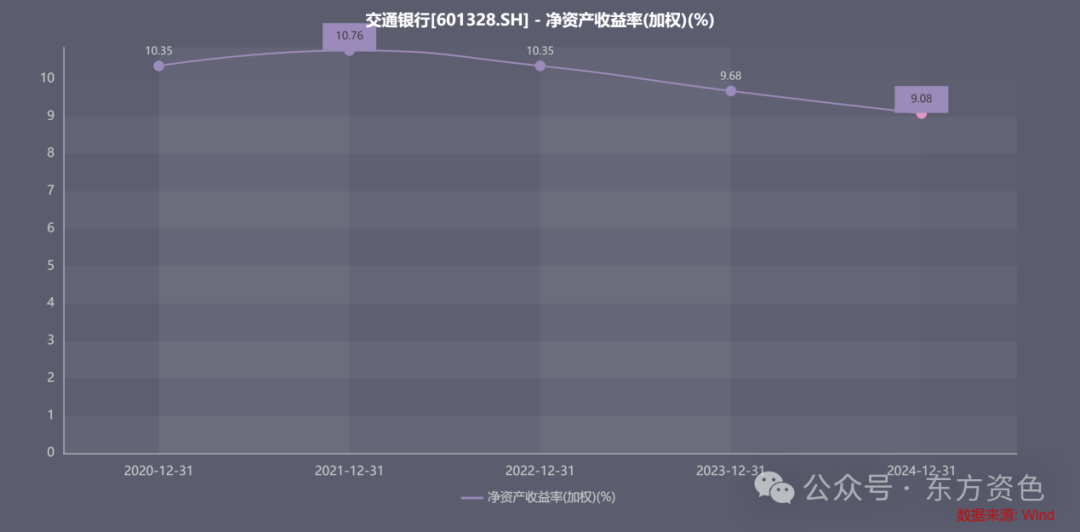 截至2024年末,交行这一指标进一步下降为9.08%,跌至近五年最低水平,或持续扩大与同业间的差距。