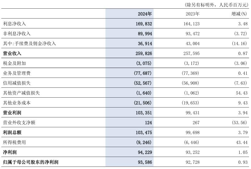 3月21日,交通银行披露2024年报。2024年,该行实现营业收入2598.26亿元,同比增长0.87%;实现归母净利润935.86亿元,同比增长0.93%。