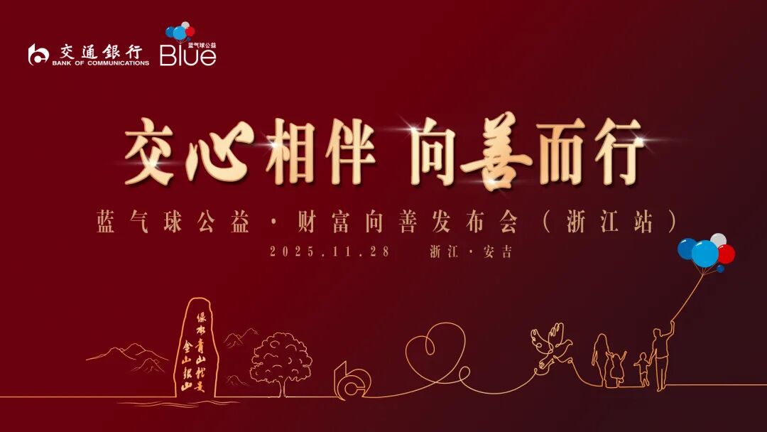 近日, 交通银行 在浙江安吉成功举办“蓝气球公益·财富向善”发布会,推出“瑞善”慈善金融服务方案。来自 湖州市民政局 、安吉县政府等政府机构, 交银国际信托 等信托公司, 中国残疾人福利基金会 等慈善组织,以及知名律所和爱心客户等各界嘉宾齐聚一堂,共话公益与金融融合新路径。