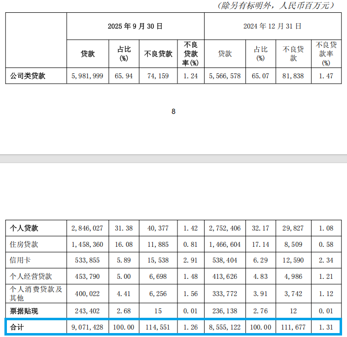 2025年1-9月,交行实现营业收入1996.45亿元,同比增长1.80%。其中,利息净收入1286.48 亿元,同比增长1.46%。而利息净收入的增长,得益于贷款的增加——交行9月末贷款余额约为9.07万亿元,较2024年末增加约0.52万亿元。