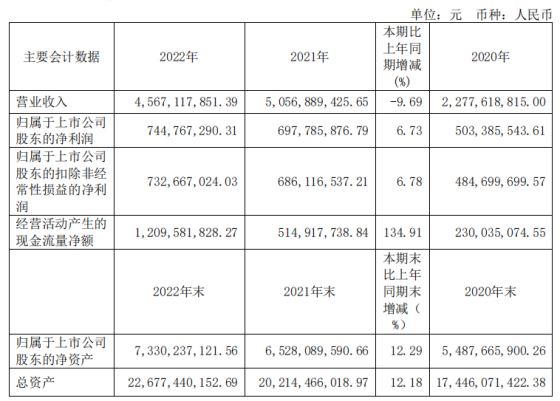 绿色动力近日发布2022年报。报告期内,公司实现营业收入45.67亿元,同比下降9.69%;毛利15.70亿元,同比下降9.34%;利润总额8.92亿元,与2021年基本持平;归属于上市公司股东净利润7.45亿元,同比增长6.73%;毛利率为 34.38%。公司拟每股派发现金红利0.12元(税前),剩余未分配利润结转下一年度,不以资本公积金转增股本、不送红股。
