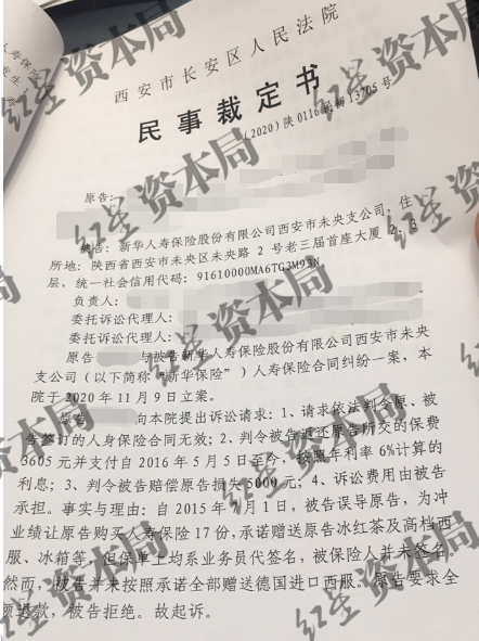 为了维护自己的权益,谢华等人从2019年开始,向宝鸡银保监局、陕西银保监局、中国银保监会等投诉新华保险未央公司,并向法院提起诉讼,要求判定双方签订的人身保险合同无效并返还保费,同时给予一定的赔偿。