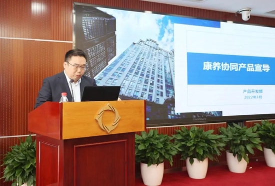 产品开发部总经理马峰宣导公司康养协同产品政策。