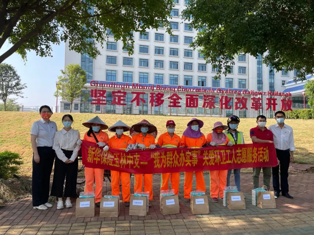 10月26日是一年一度的环卫节,新华保险玉林中支联合四级机构容县支公司、兴业营销服务部开展“同心聚力、卫爱出发”主题公益活动,为周边的环卫工人送上口罩、手套、纸巾等物资,为他们送上节日的祝福,叮嘱他们要注意疫情防控,感谢他们不畏严寒酷暑,为环境建设做出的辛苦付出。同时,玉林市区及玉林辖区内所有县域的新华保险客服大厅都设立了环卫工人服务驿站,邀请他们工作辛苦之余可以到环卫服务驿站添水休息。新征程呼唤新担当,新使命激励新作为。新华保险玉林中支在高质量发展业务的同时,始终坚持开展公益活动,落实“我为群众办实事”,用实际行动践行企业社会责任。