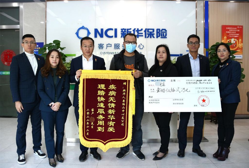 投保为防患未然,理赔成雪中送炭。12月7日,新华保险客户李先生(化名)带着锦旗,来到新华保险佛山中心支公司,感谢公司的周到服务,和及时送到的152万元理赔款。