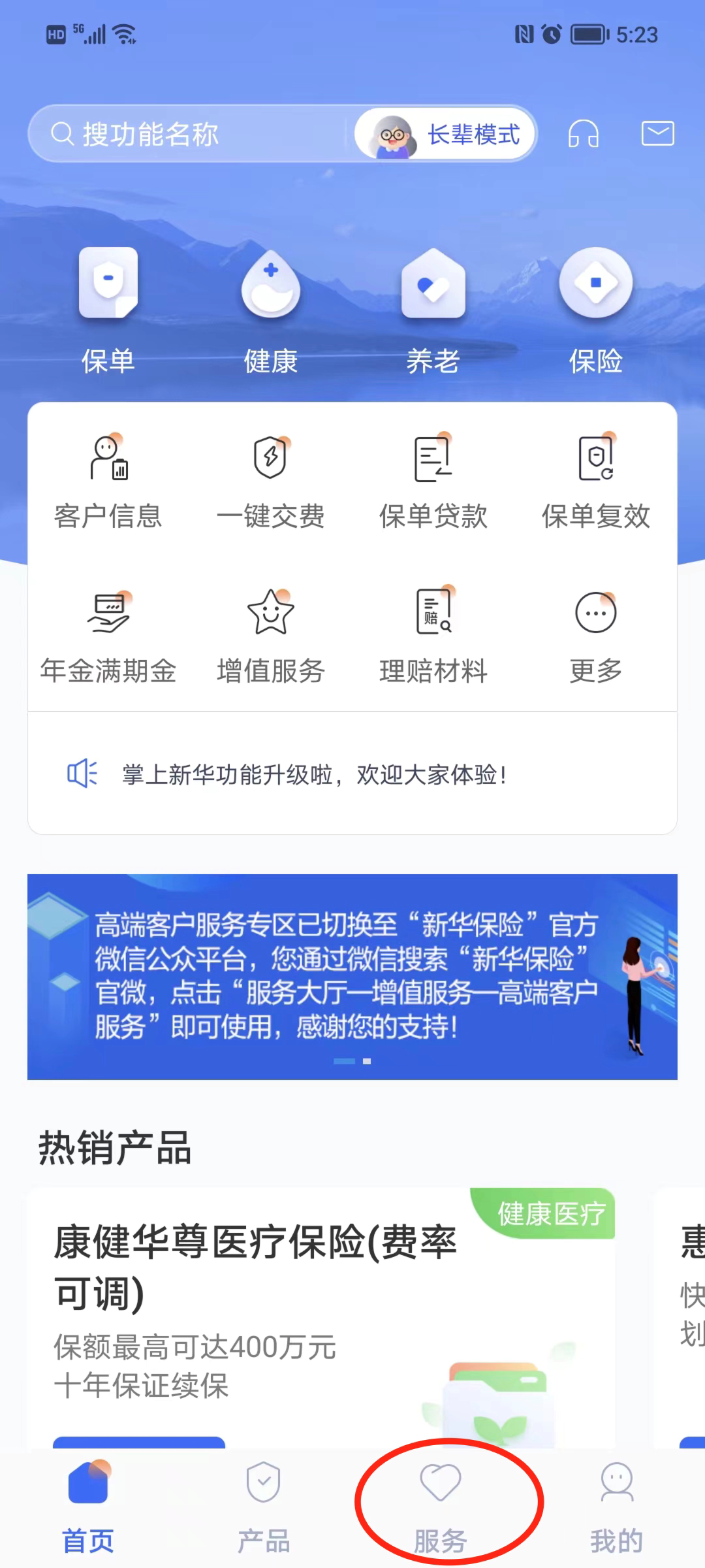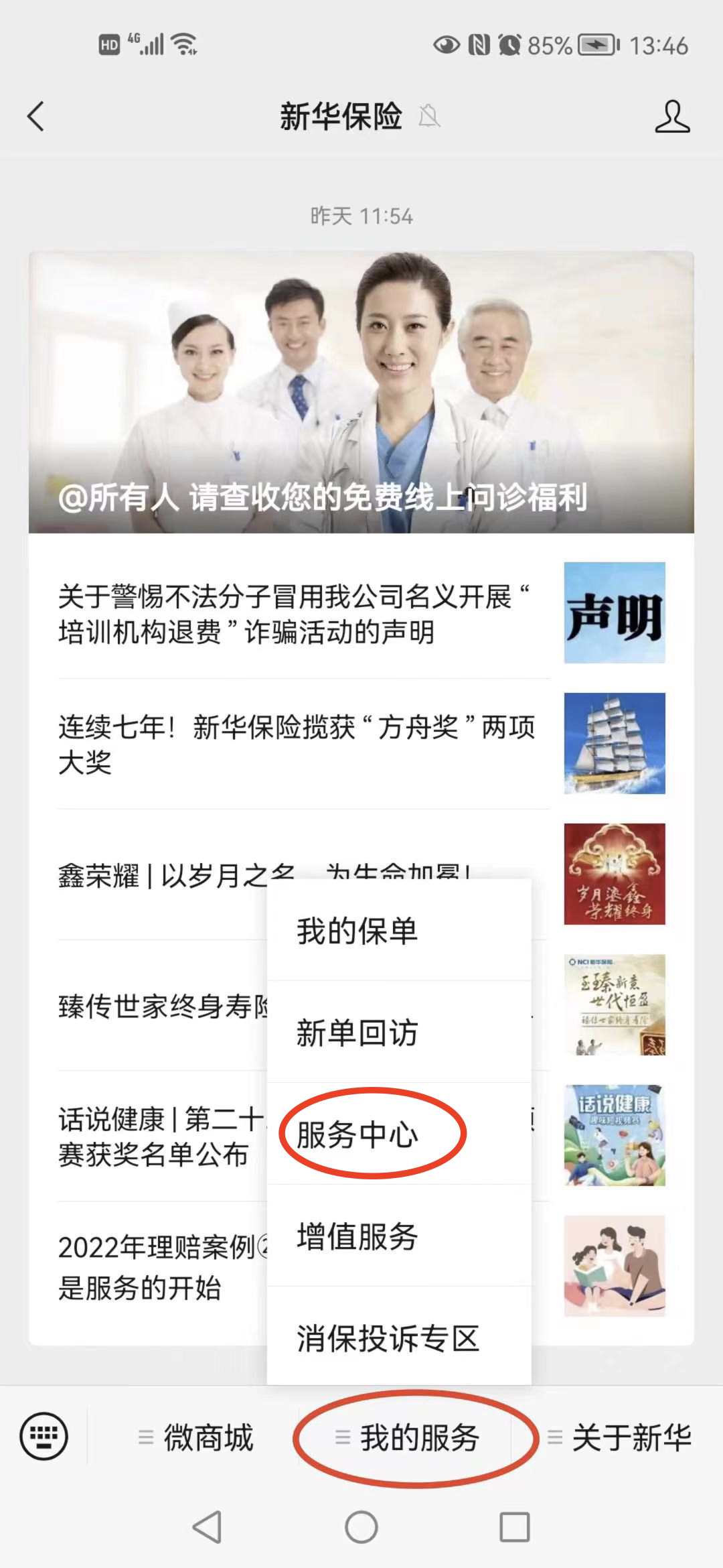 进入“新华保险”公众号—“我的服务”—“服务中心”—“理赔服务”。