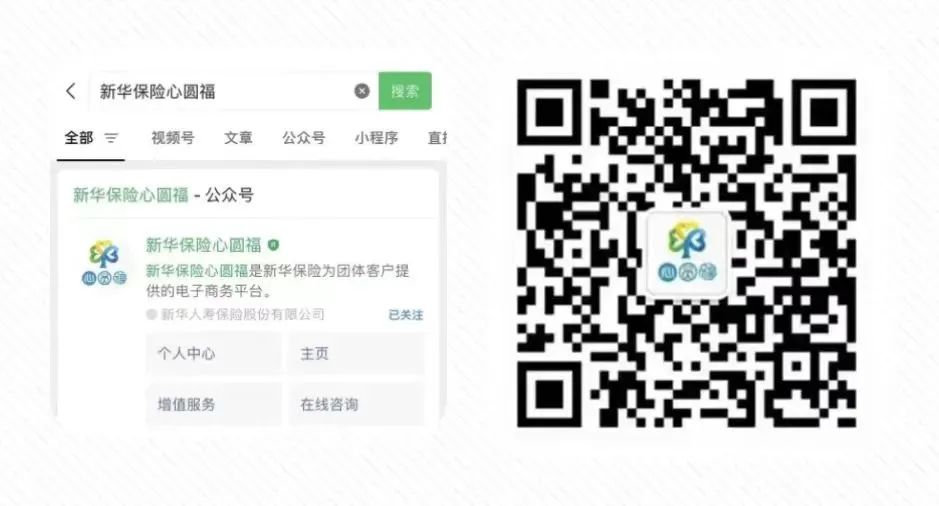 您可在微信搜索“新华保险心圆福”,或扫描下方二维码进入心圆福公众号