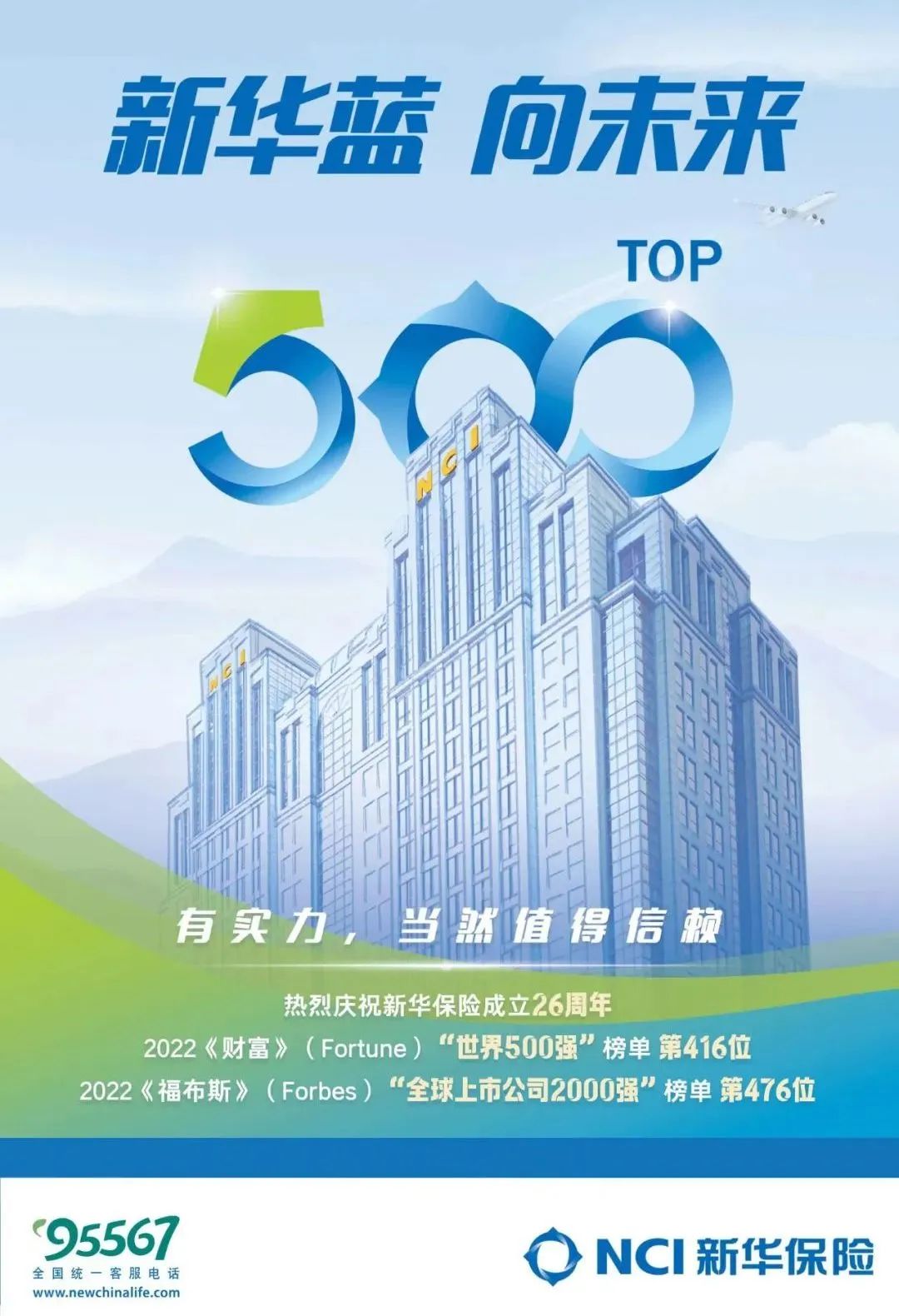 2022年8月2日,2022年《财富》(Fortune)世界500强排行榜正式发布。新华保险以344.76亿美元的营业收入第四次入围榜单,排名第416位。