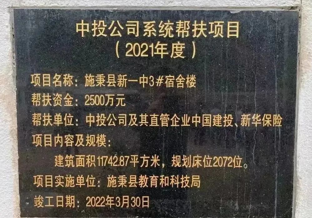 2020年以来,按照中投公司统一部署,新华保险共同参与定点帮扶贵州施秉县。2022年,向施秉投入无偿帮扶资金940万元,有偿帮扶资金188万元,消费帮扶540万元。三年来,累计投入无偿帮扶资金2100多万元,累计购买和帮助销售农产品1500多万元。完成中投直管企业省级联动机制在全国范围搭建实施,提升社会公益品牌影响力。