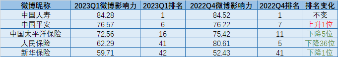 对比五大A股上市险企来看,中国人寿排名第一;中国平安排名第二,位居总榜单第六,排名较2022年四季度上升1位;中国太平洋保险挤进榜单前二十,排名较上期下降5位;人民保险排名降幅最大,本期榜单排名第四十一位,较上期下降36位;新华保险表现最差,位于榜单第四十二位。