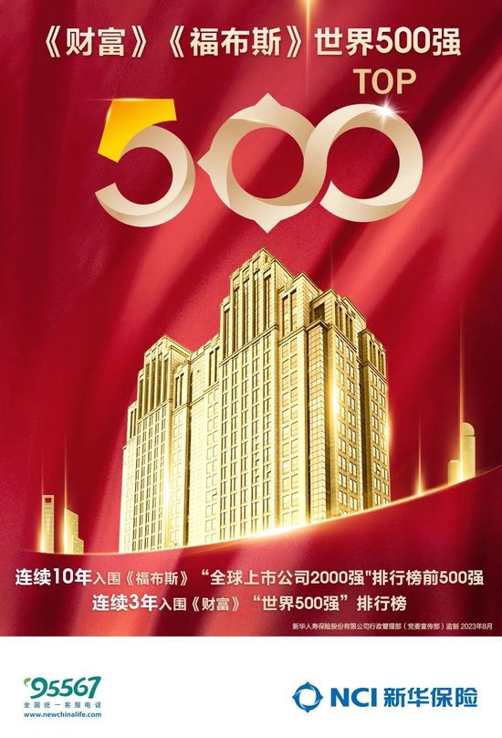 8月2日,2023年《财富》世界500强排行榜正式发布。榜单显示,新华保险2022年营业收入达318.61亿美元,连续3年入榜《财富》世界500强。今年6月,新华保险已荣登《福布斯》“全球上市公司2000强”榜单前500强,成为蝉联“双世界500强”的保险企业。