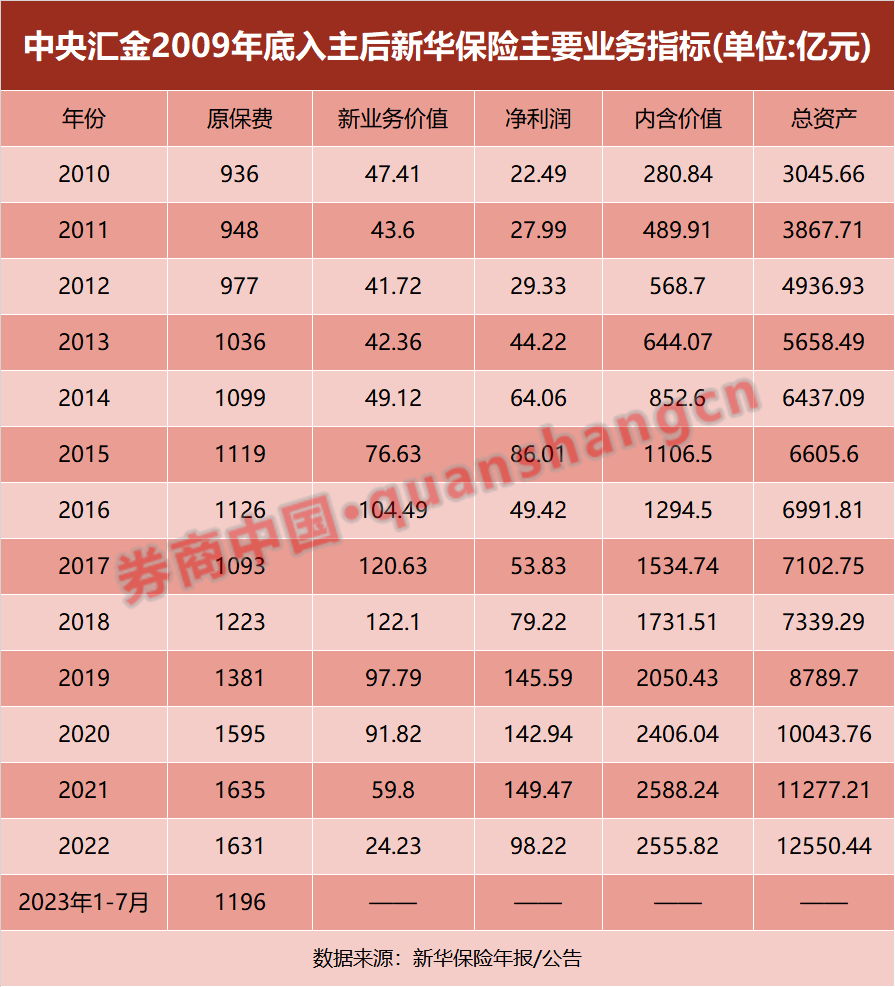 新华保险是1995年《保险法》颁布后首批获批的5家股份制保险公司之一,1996年开业,由宝钢集团、神华集团等共15家国资、民资背景的公司发起设立。这家公司的发展曾经跌宕起伏,早期经历了跑马圈地、第二任董事长违规运作保险资产被起诉、偿付能力不足、保险保障基金“托管”的时代;2009年底迎来中央汇金入主;2010-2011年完成增资扩股和两地上市,成为规范化运作的国有大型寿险公司,如今是保险业为数不多万亿级机构之一。