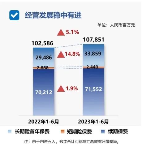 2023年上半年,新华保险坚持“稳中求进、转守为攻”的工作总基调,加快推进转型发展,长期期交势头强劲,续期基盘稳固,业务品质企稳向好,新业务价值大幅提升,总保费规模稳中有进。