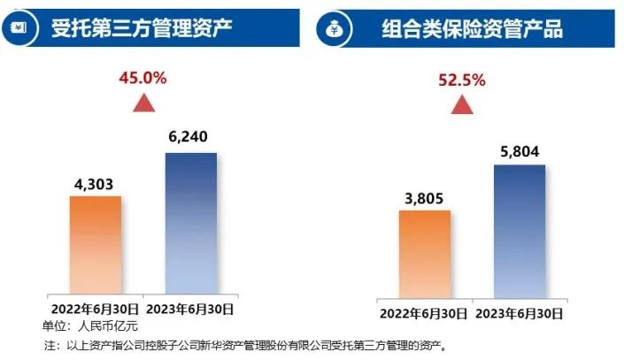 截至2023年6月末,资产管理公司受托第三方资产管理规模达6,240亿元,较上年同比增长45%,其中,组合类保险资管产品管理规模达5,804亿元,比2022年同期增长1,999亿元,连续3年保持每年增长规模超千亿元。