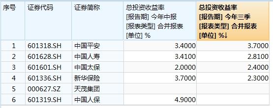 中国太保、中国平安三季度总投资收益率出现环比上扬,分别从2%增至2.4%以及从3.4%增至3.7%。
