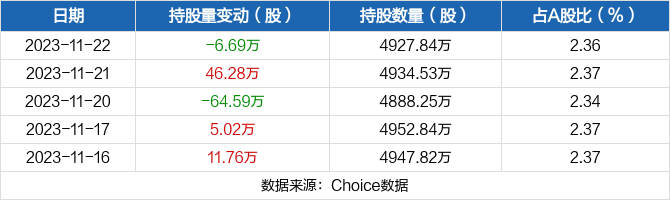 11月22日,新华保险被沪股通减持6.69万股,最新持股量为4927.84万股,占公司A股总股本的2.36%。