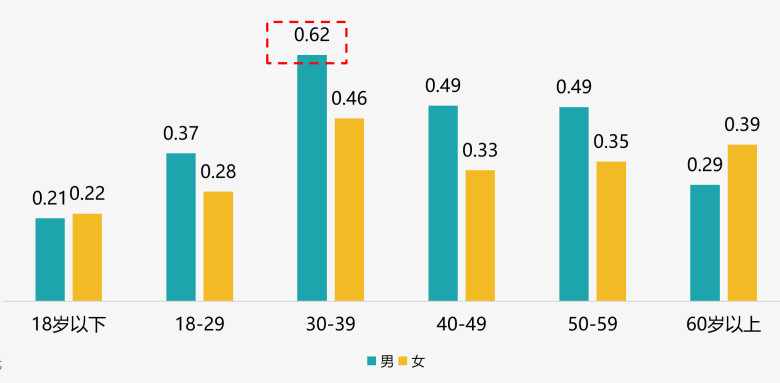 医疗险赔付中件均赔付最高的年龄段为30-39周岁男性。该年龄段客户作为家庭主力力量,工作生活压力大,风险系数高;同时客户因病/意外不幸出险后,家庭会竭力利用最优质的医疗手段予以治疗,花费较高。一份足额的商业医疗保障,就可以大大降低家庭经济压力。