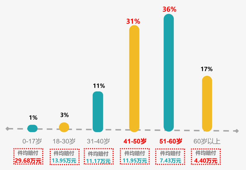 重大疾病理赔中,41-60岁为重大疾病发病率较高的年龄段,建议提前备好重大疾病保险为人生保驾护航。